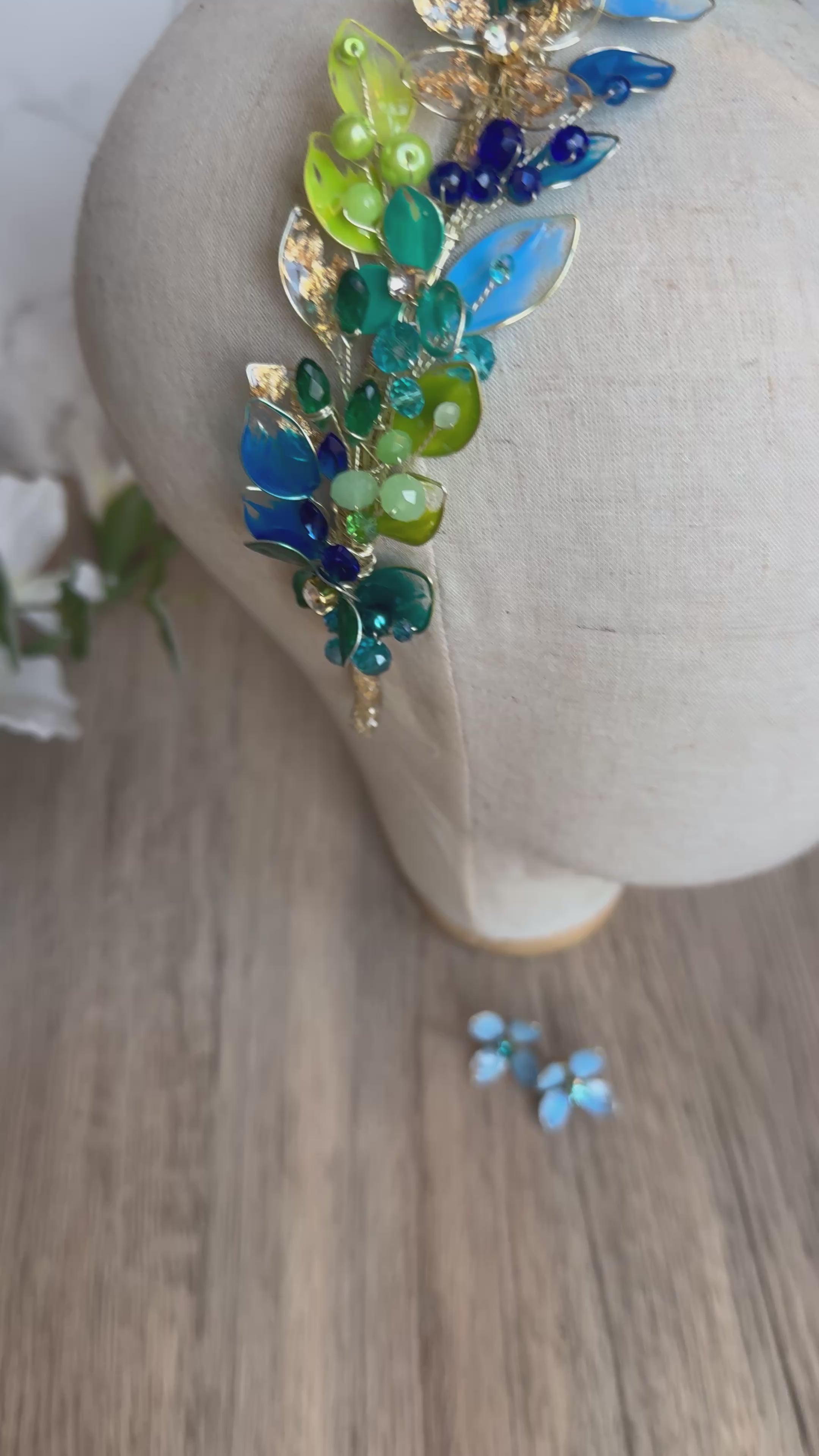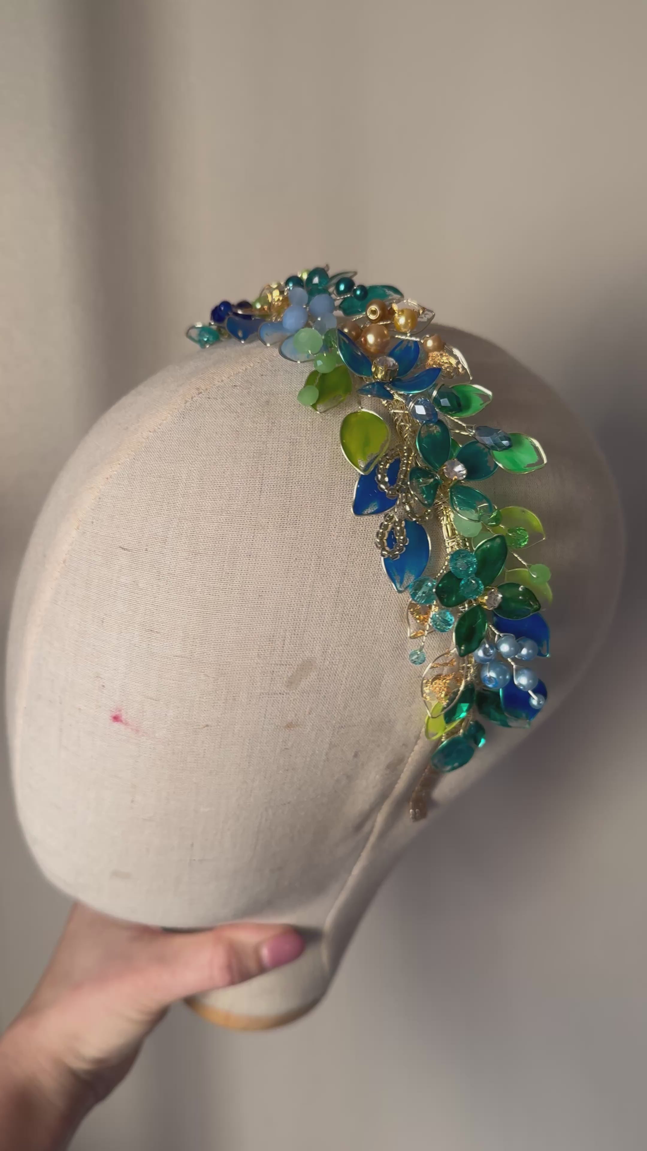 Add a touch of whimsy to any special occasion with our Blue and Green Low style headband. With its stunning design, this headband is sure to make you stand out in a playful and fun way. Perfect for adding a pop of color to your outfit, it's the ultimate accessory for any event.