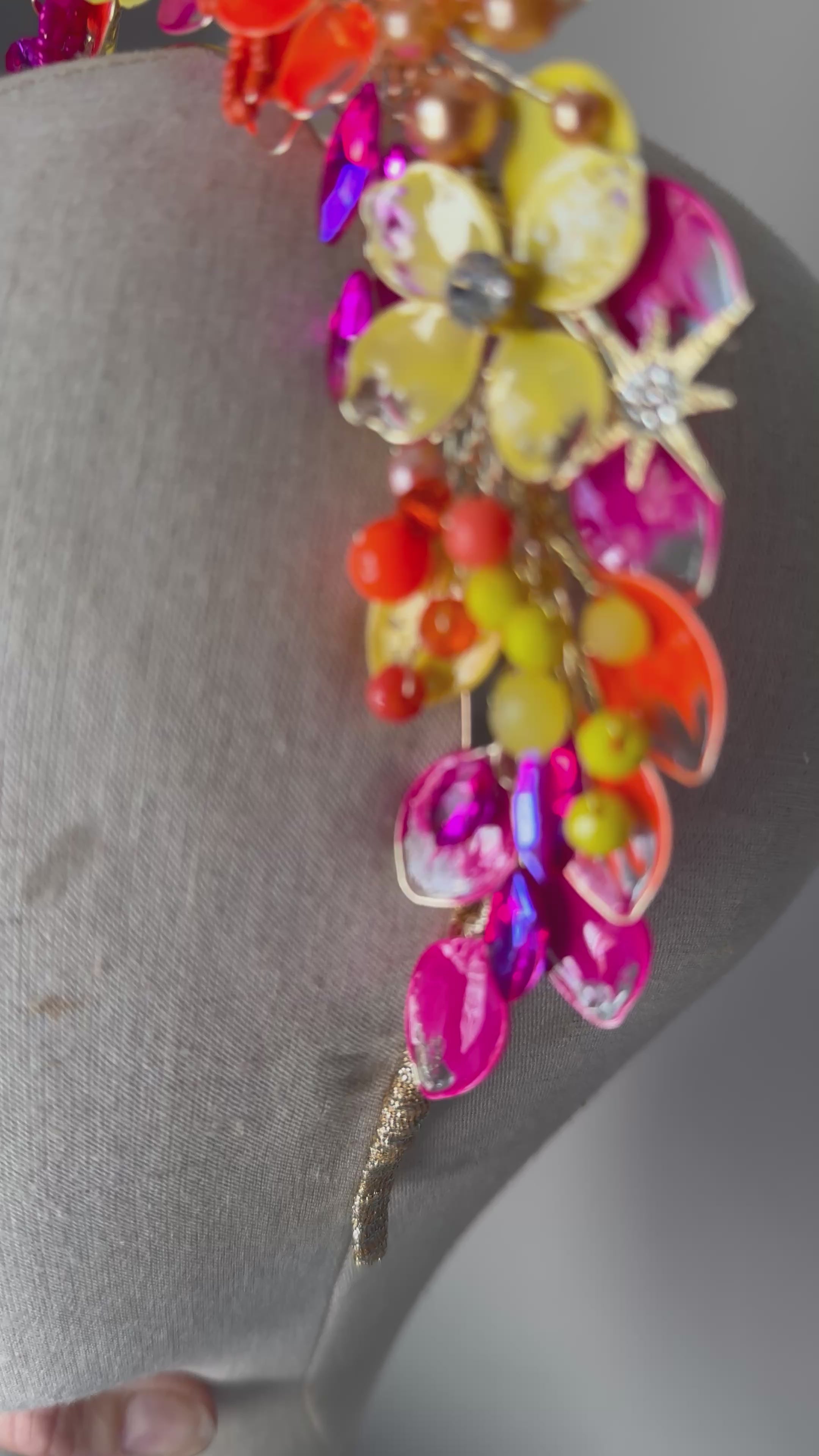 Fucshia, Yellow and Orange wedding guest headpiece Fucshia, Yellow and Orange wedding guest headpiece Precius pearls