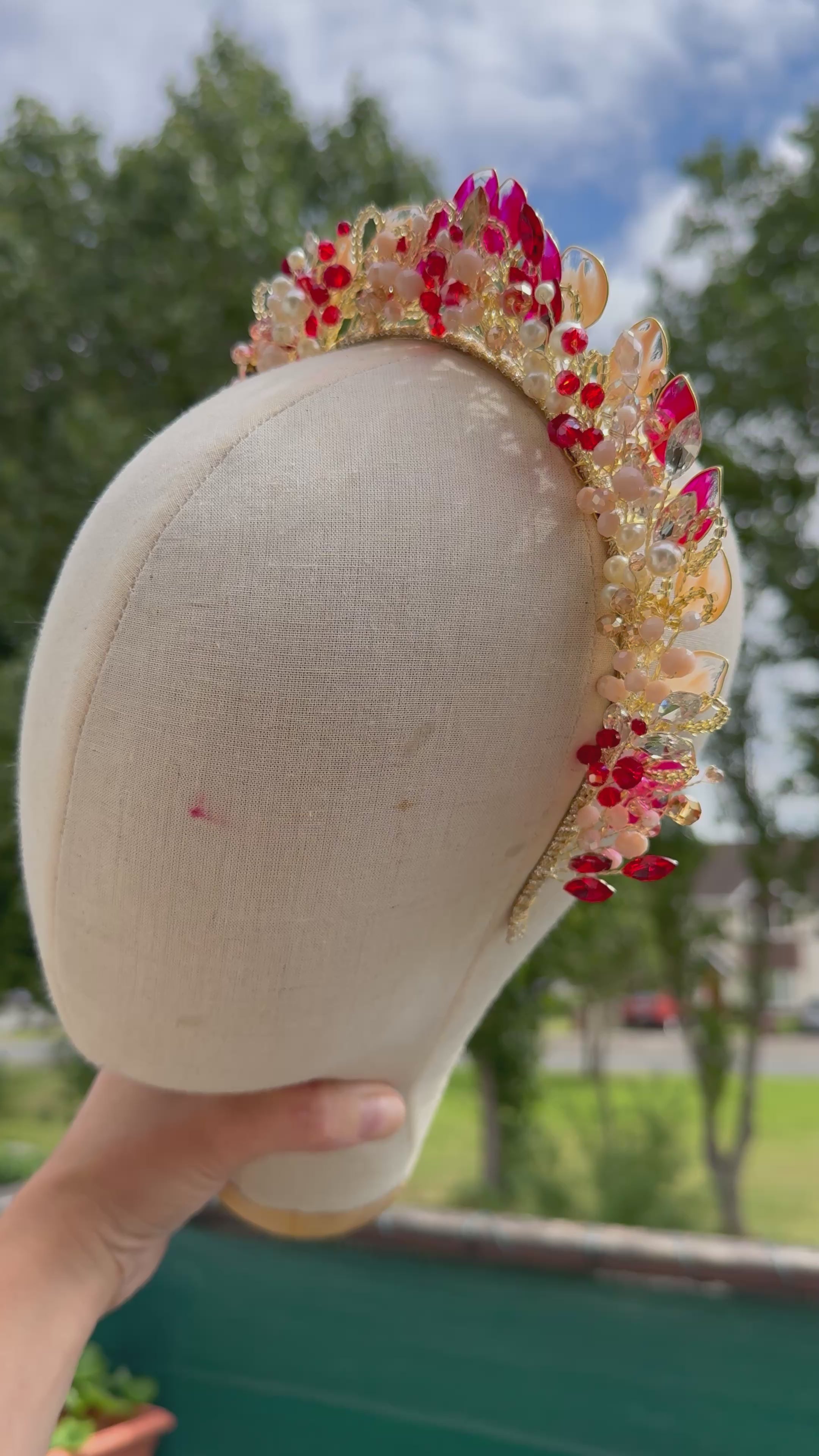 Red and Beige pointed wedding guest crown
