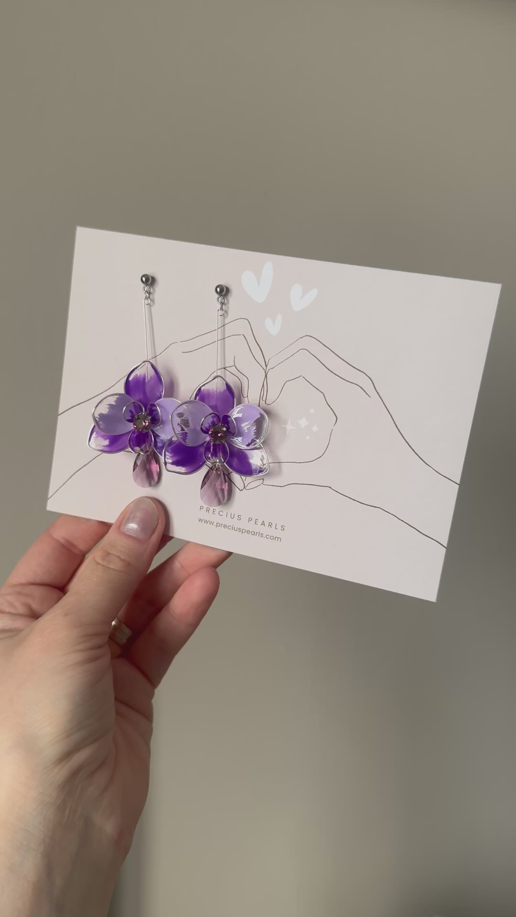Indulge in the ethereal beauty of our Violet Orchid Dream earrings, a stunning piece that exudes elegance and sophistication. These exquisite floral earrings feature delicate violet orchids, meticulously crafted to capture the intricate details of nature's blossoms.